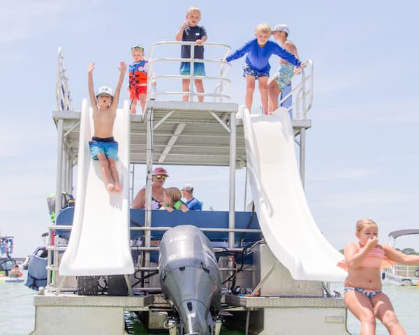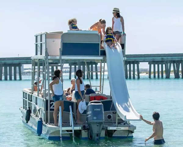 Experience the ultimate day on the water with room for 12, two decks to relax, and double slides for endless fun.